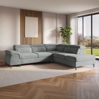 Notre canapé d’angle convertible avec coffre en tissu doux s’intégrera parfaitement dans votre salon grâce à son design chaleureux et moderne.