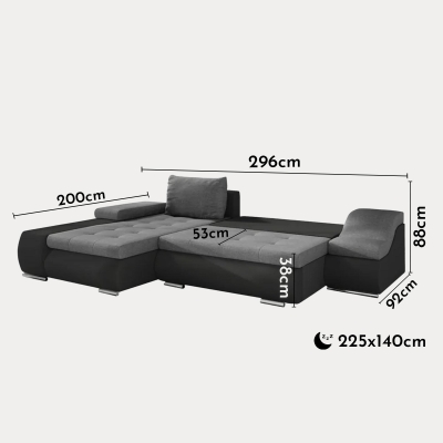Dimensions : Largeur 296 cm x Profondeur 200 cm x Hauteur 88 cm / Dimensions couchage : 225 x 140 cm