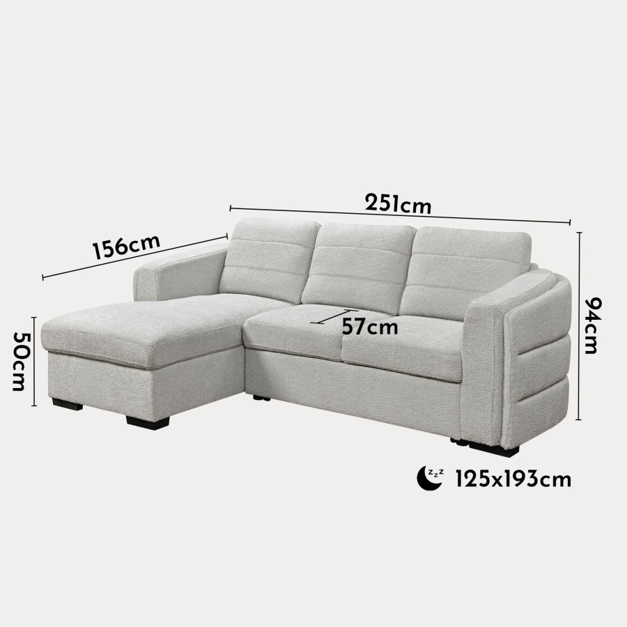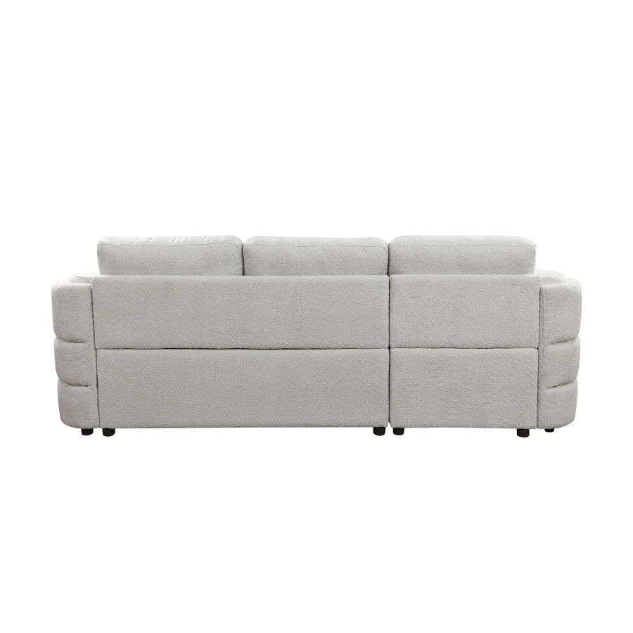 Canapé d'angle convertible avec coffre en tissu bouclette gris clair - Angle gauche