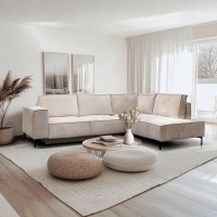 Alors, détendez-vous avec classe ! Laissez-vous séduire par le confort et appréciez vos moments de détente en toute sérénité avec le canapé d'angle convertible VALERIO en tissu beige.