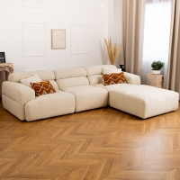 Ajoutez une touche d'élégance à votre intérieur avec notre canapé d'angle en tissu capitonné beige - Angle gauche CYNDA.